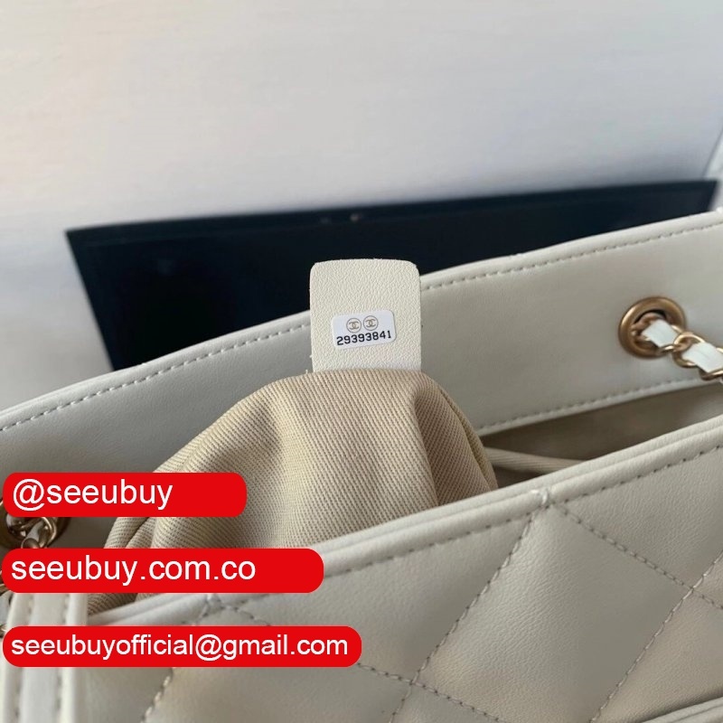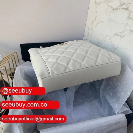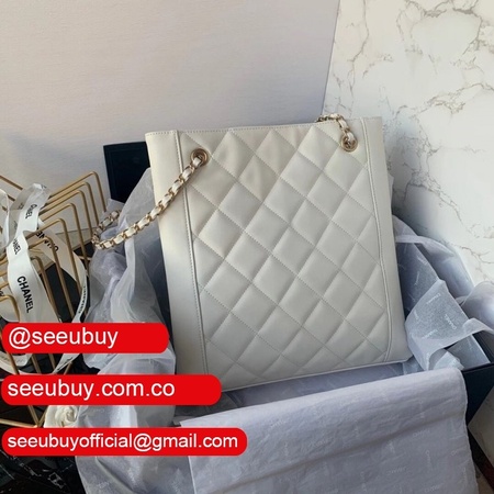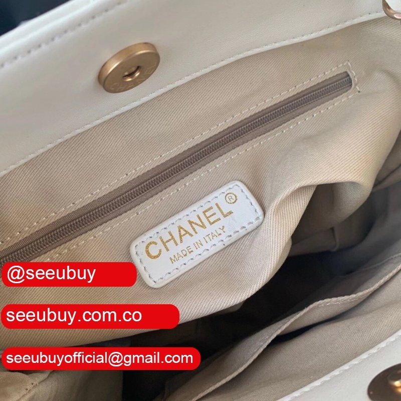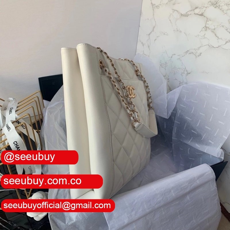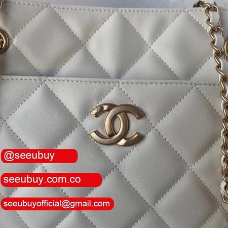 Shop CC Casual Style Calfskin Chain Leather Party White