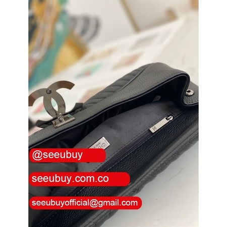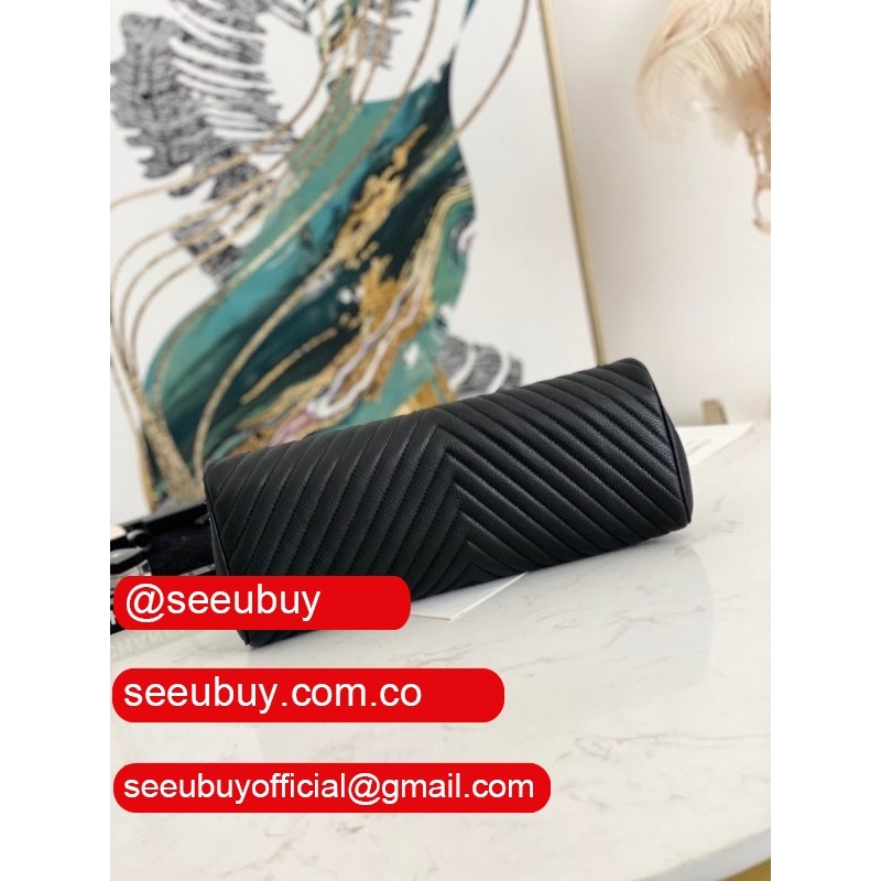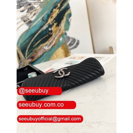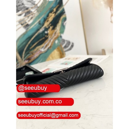 Top Knockoff Clutches 86015 Deerskin Leather Replica Black Bag