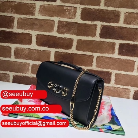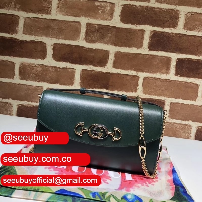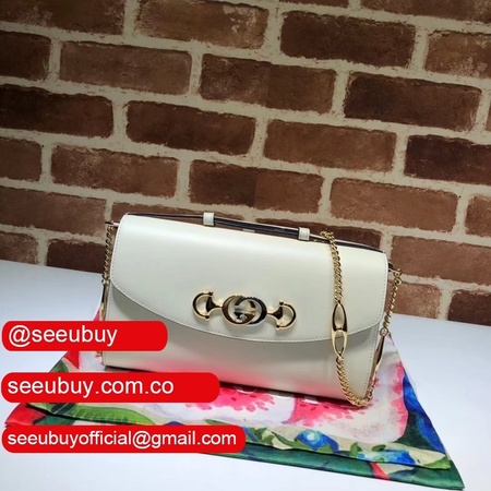 Merging two of its most distinctive codes into one symbol: the Interlocking G Horsebit - the hardware is replicated from a rare piece from the Gucci archives, chosen for its contemporary appeal and presented in a mix of silver and gold tones. Introduced in the evocative setting of the The?tre Le Palace in Paris, the Gucci Zumi line takes its name from actress and experimental musician Zumi Rosow, who walked the Spring Summer 2019 runway carrying the bag. The bag can be carried cross body, used as a clutch when the chain is removed and worn as a top handle when the leather handle is extended.