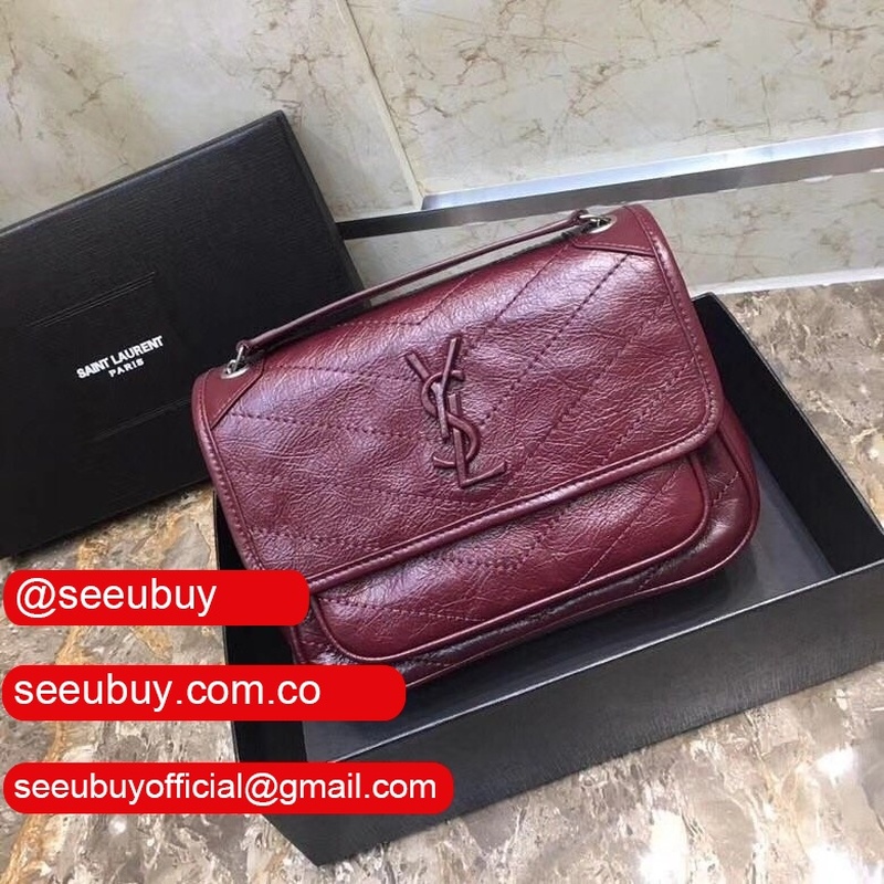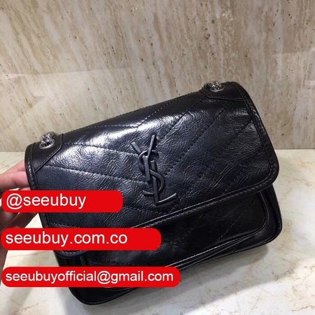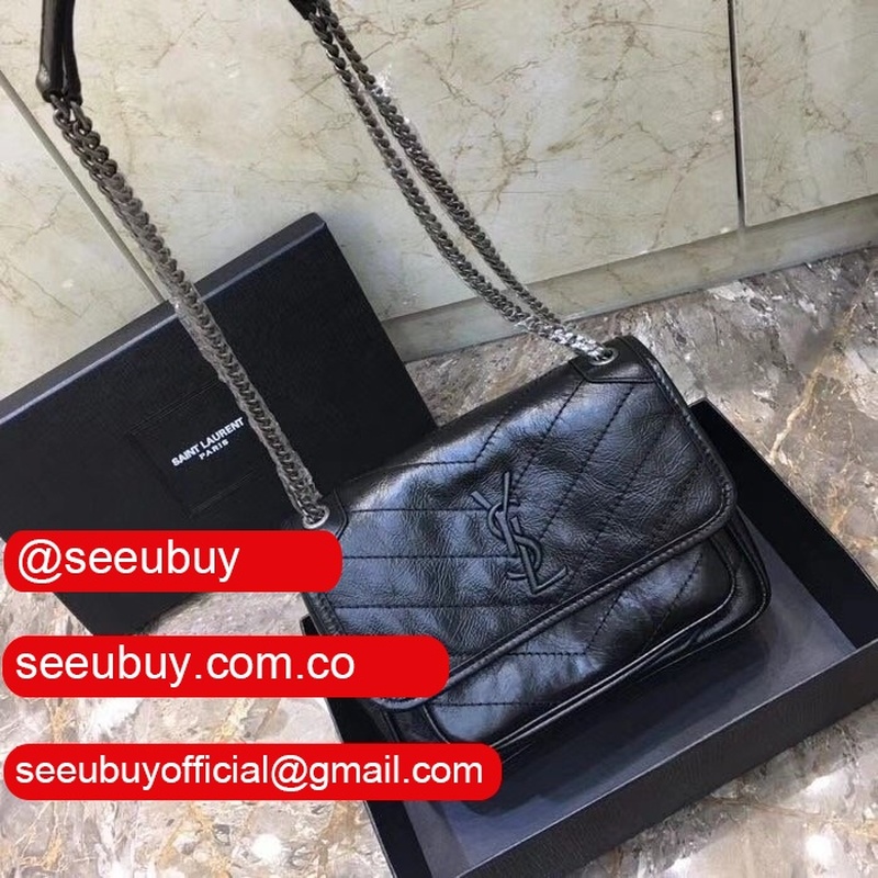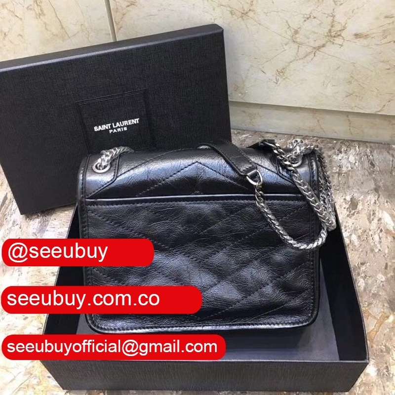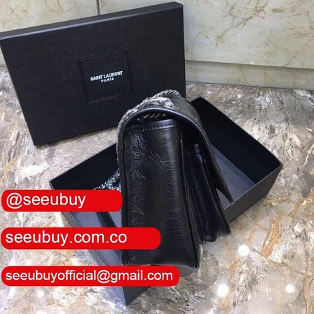YSL Replica Niki 22cm crinkled vintage black leather