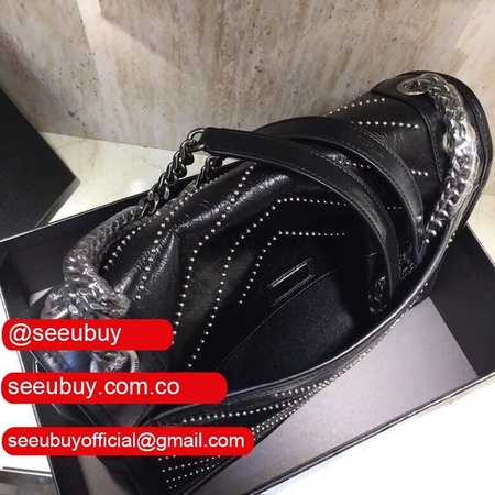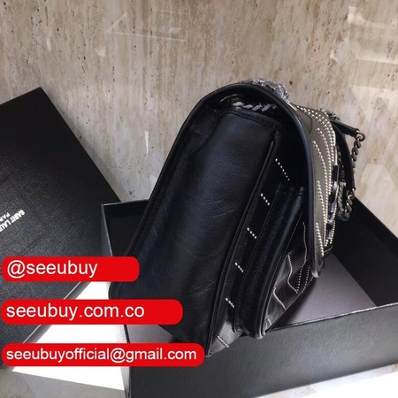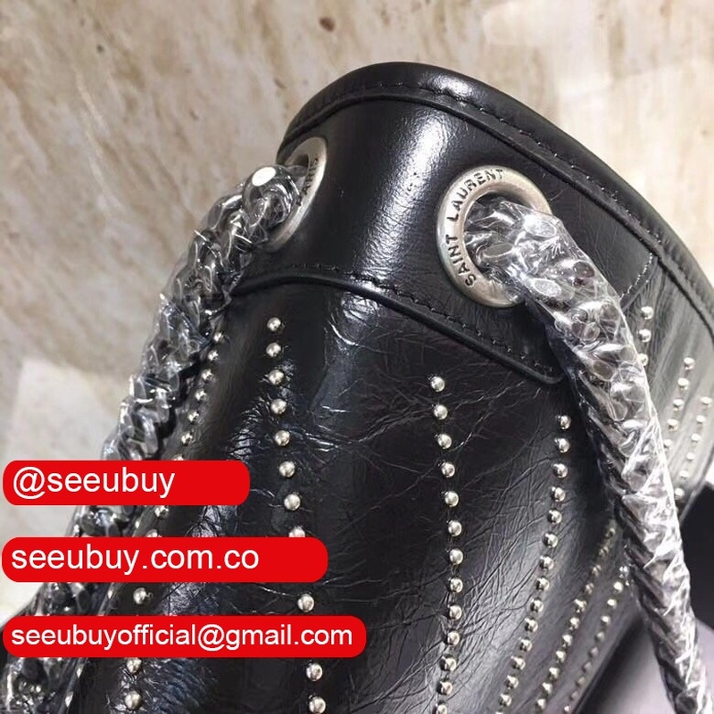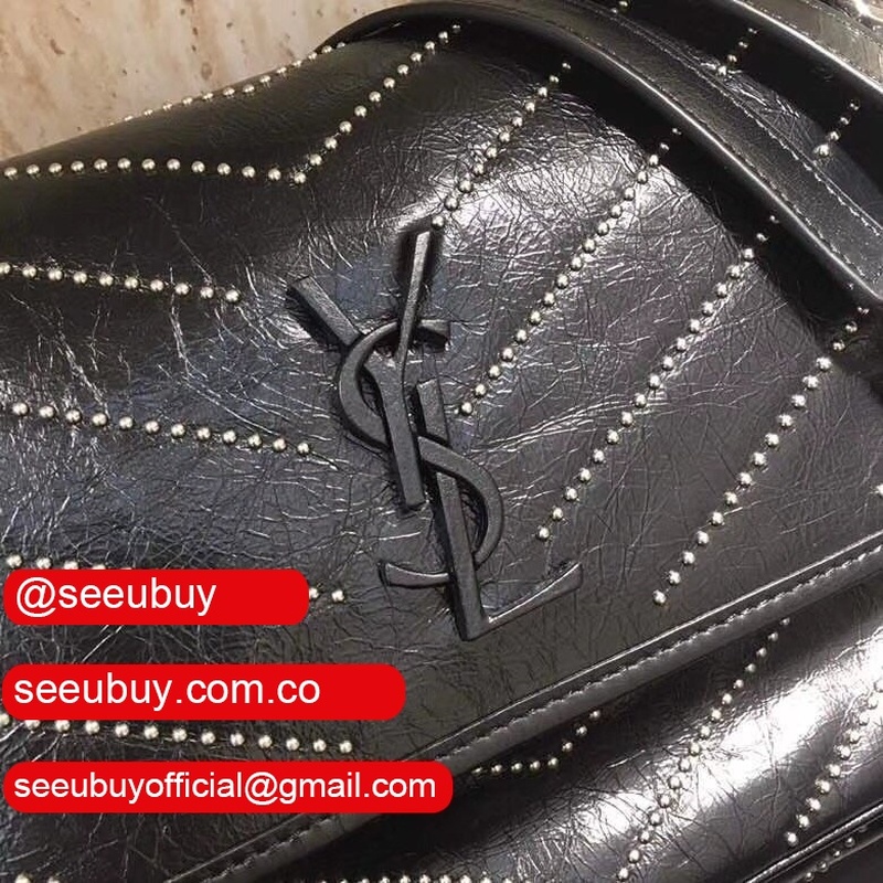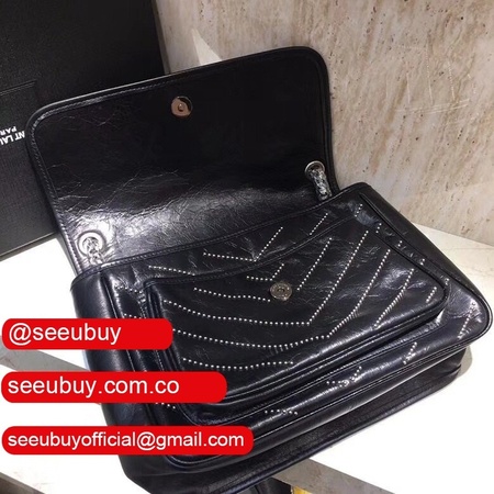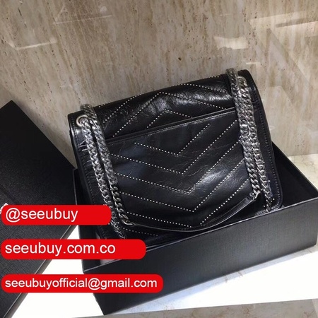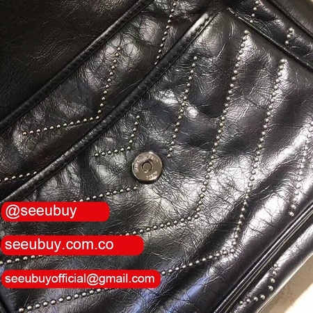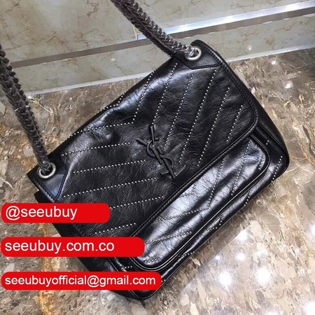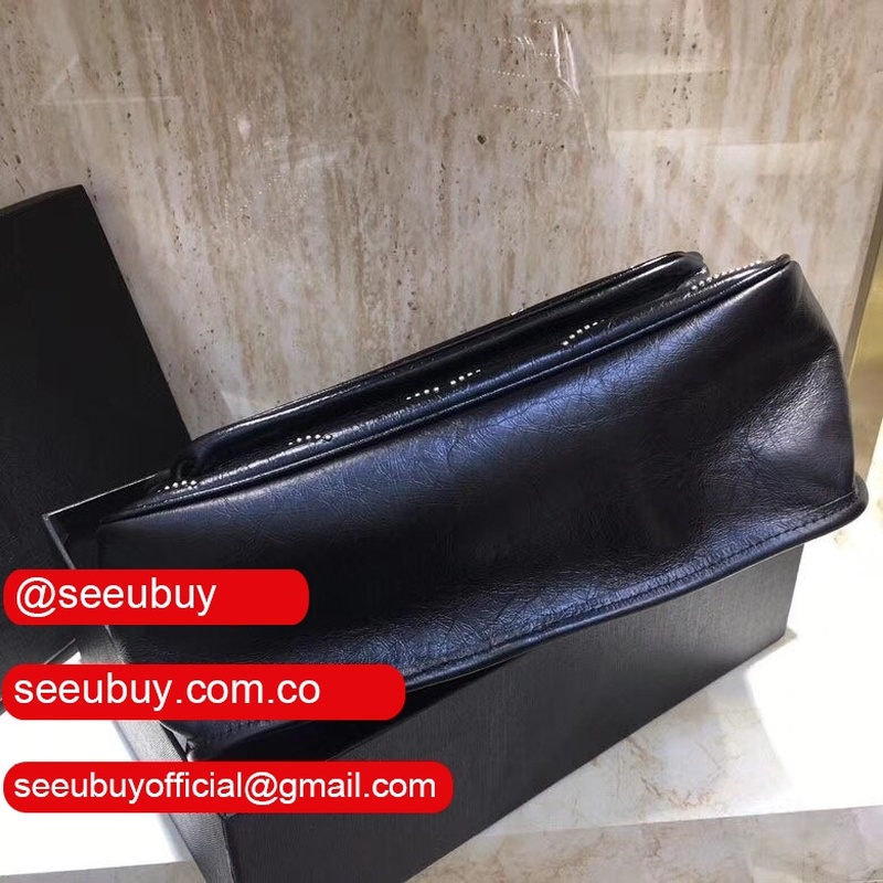 Top Quality YSL Niki 28CM crinkled vintage black leather