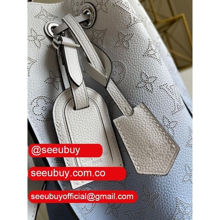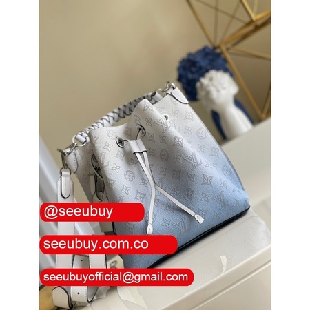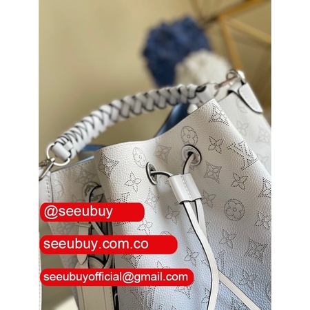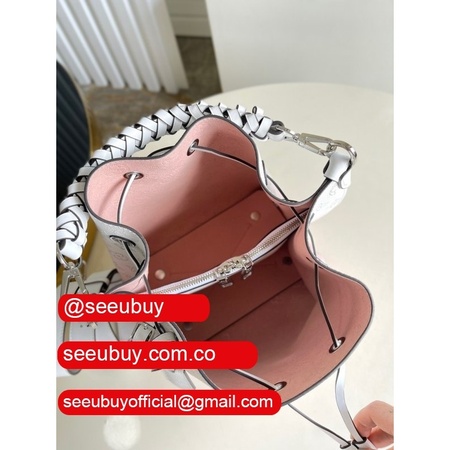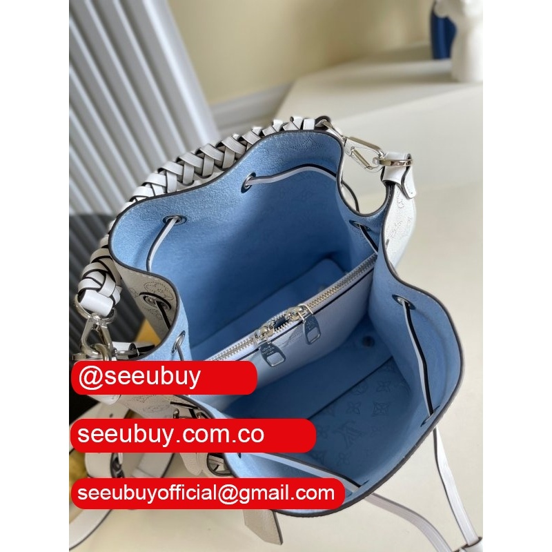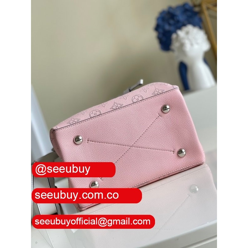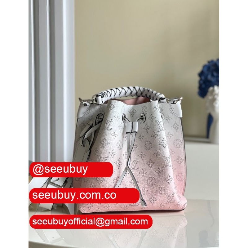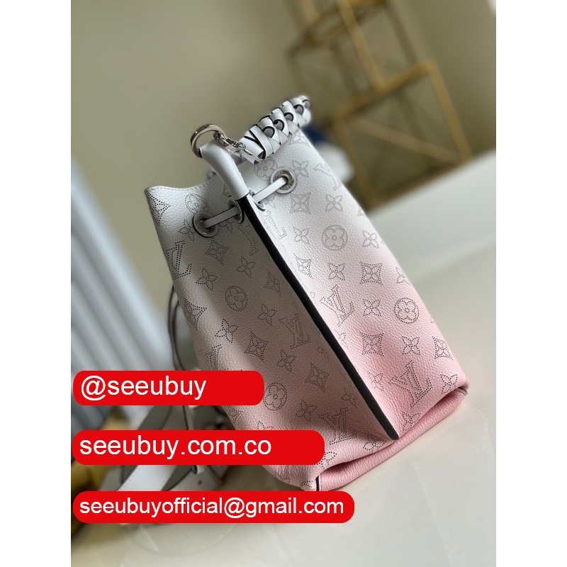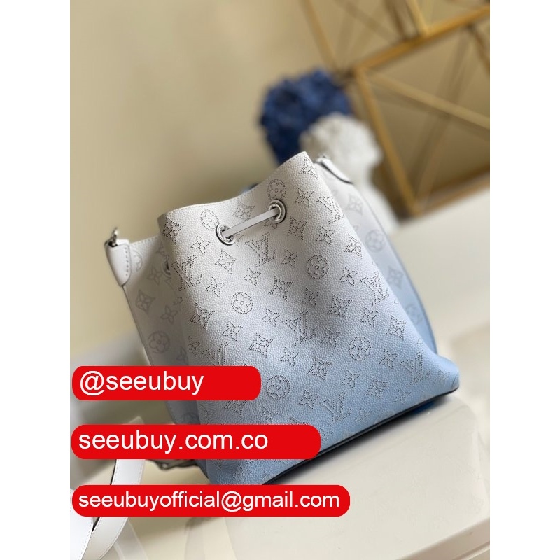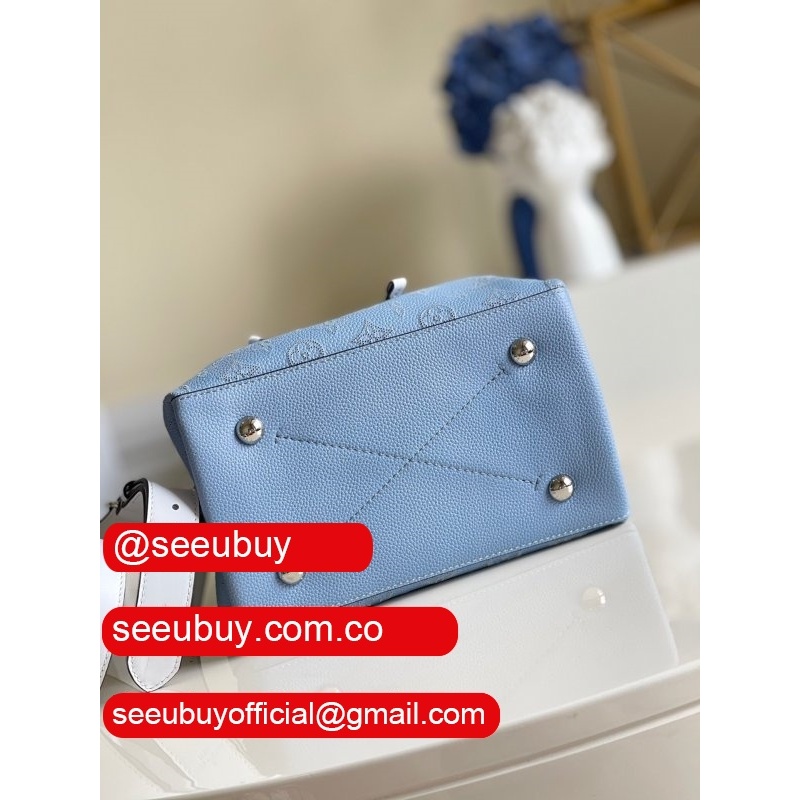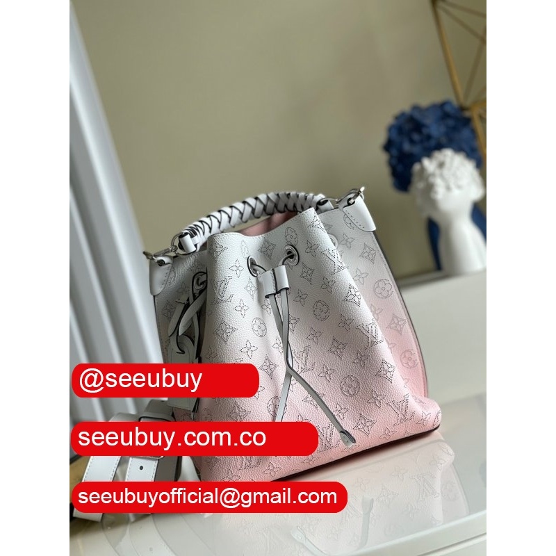 uk m55800 muria pink/blue leather bucket crossbody purse