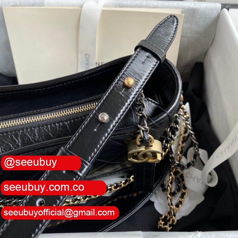 Fashion GABRIELLE Small Hobo A91810 Black Bag Aged Calfskin