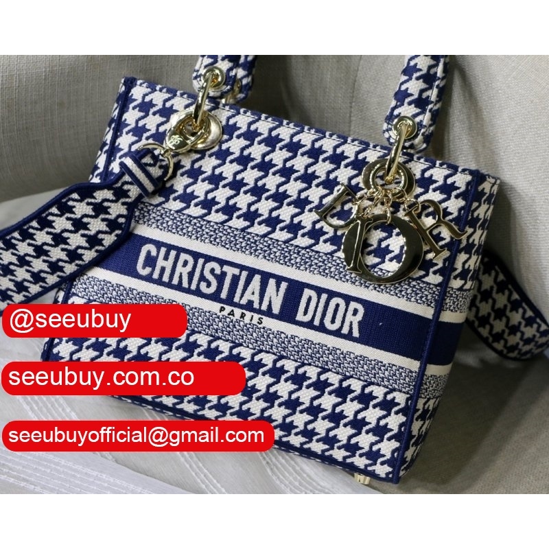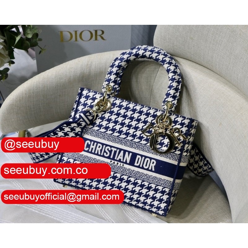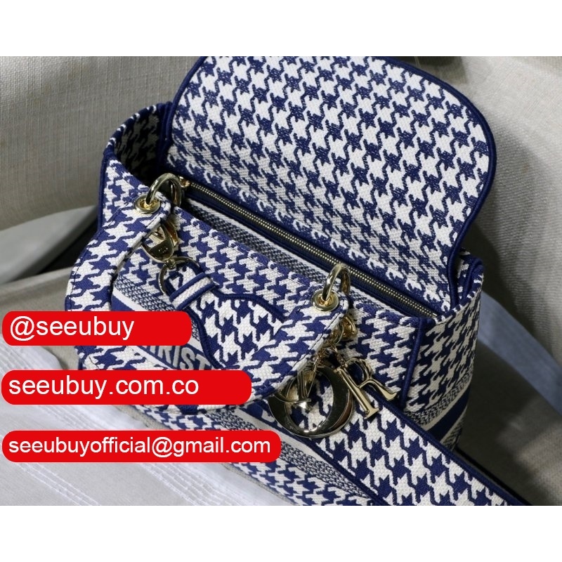 Blue Top QualityLady Dior 24cm Palms Embroidery Lady D-Lite Bag