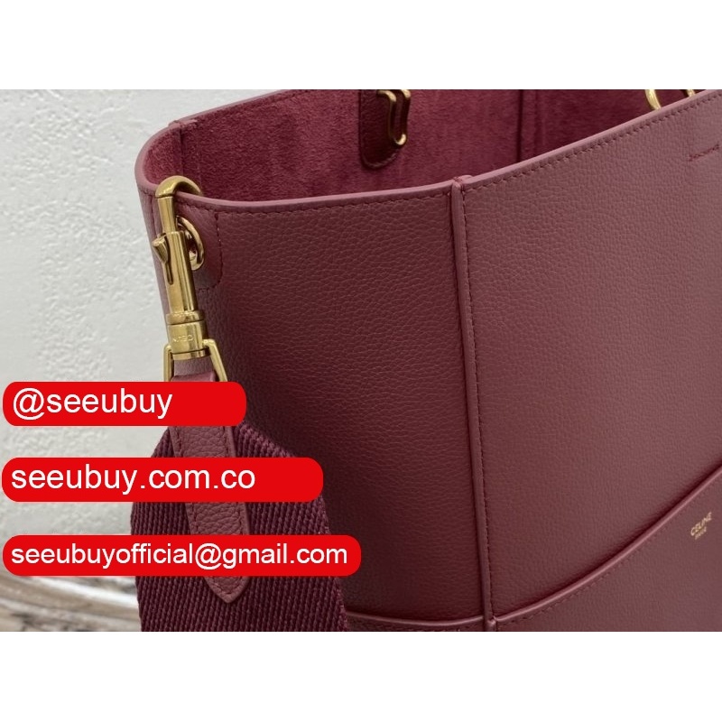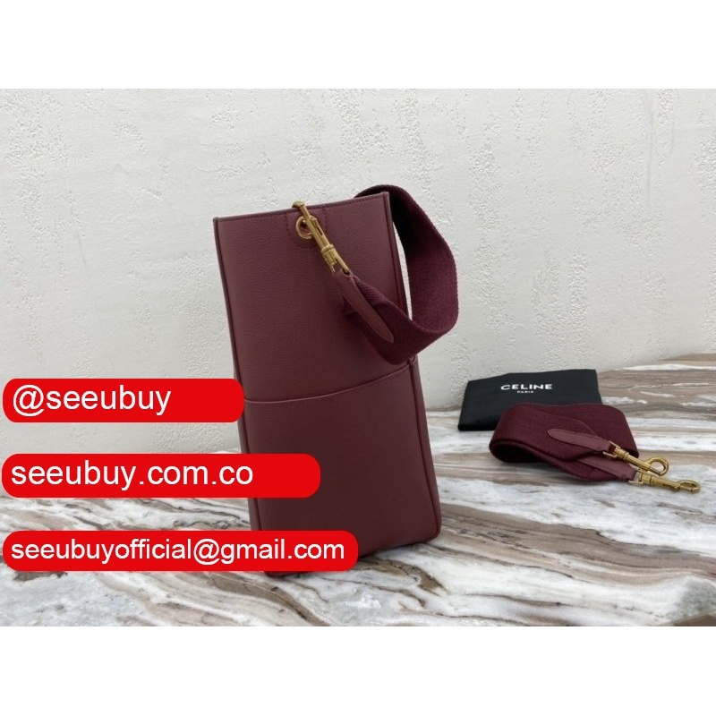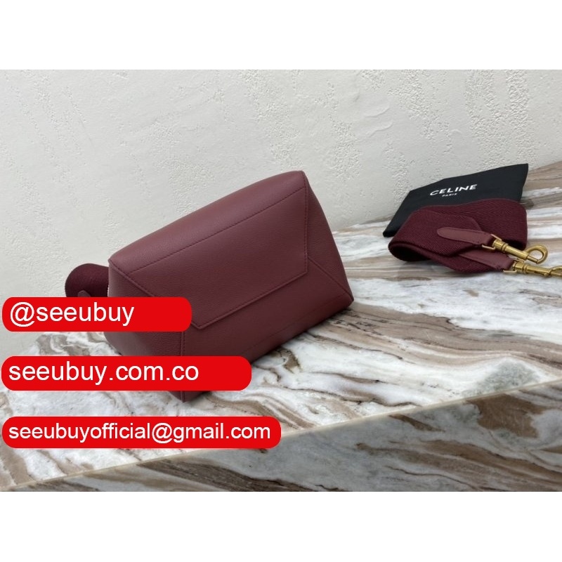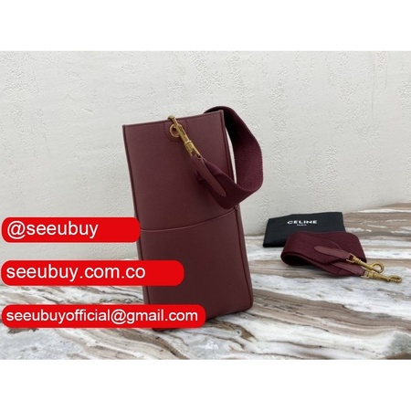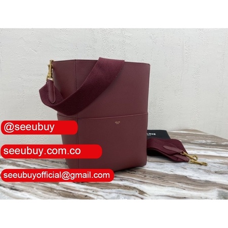 Women's Sangle bucket Replica Celine bag Wine red grained calfskin