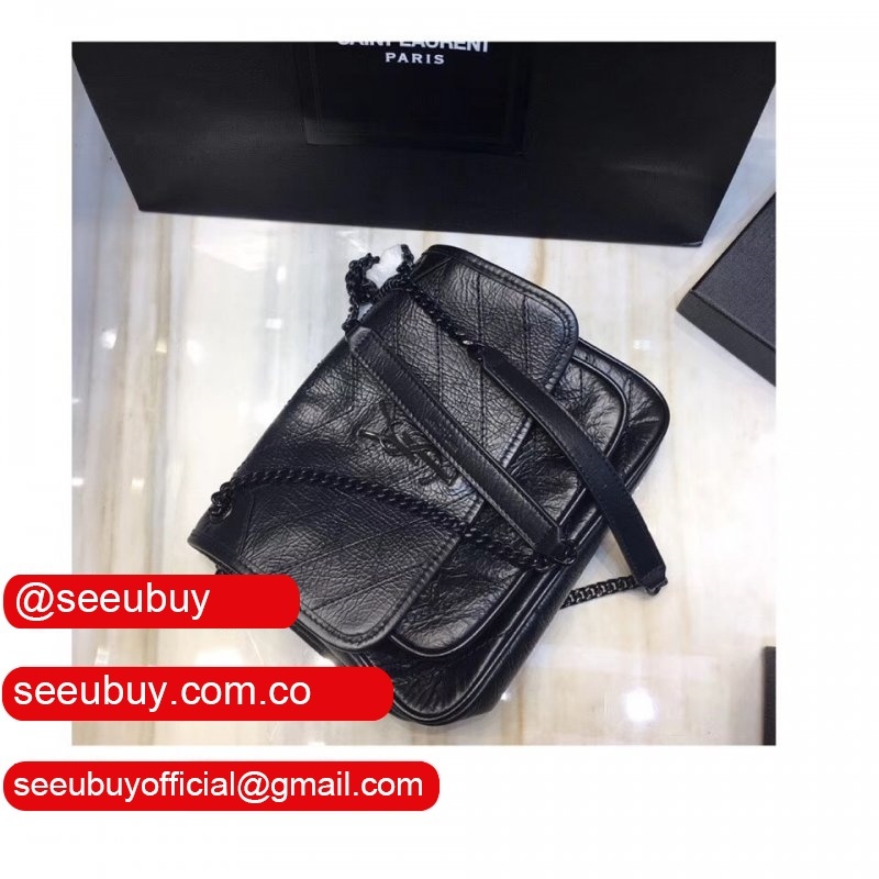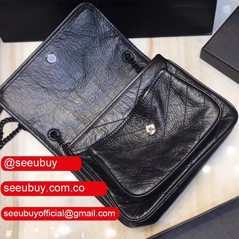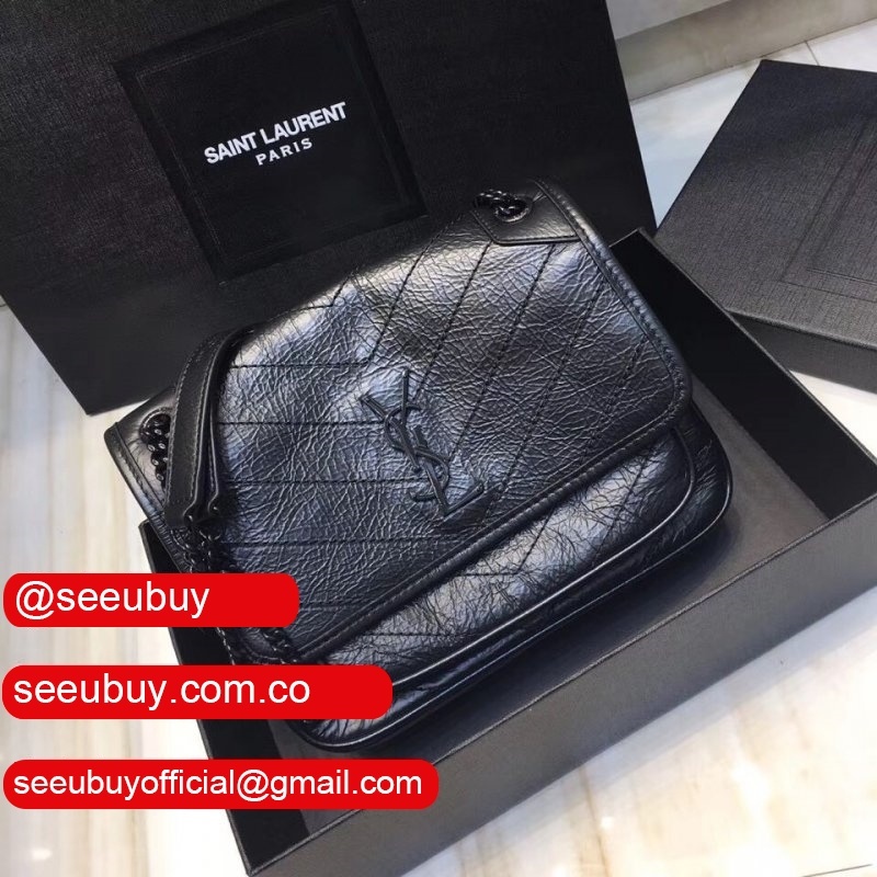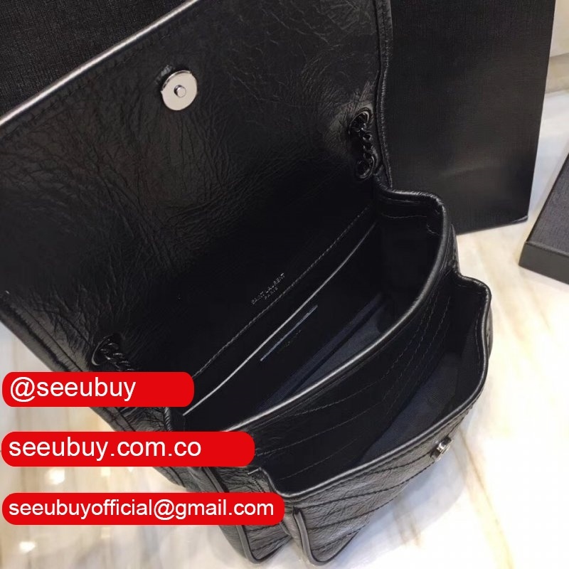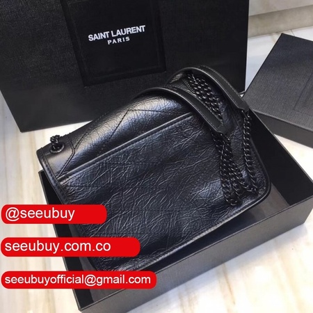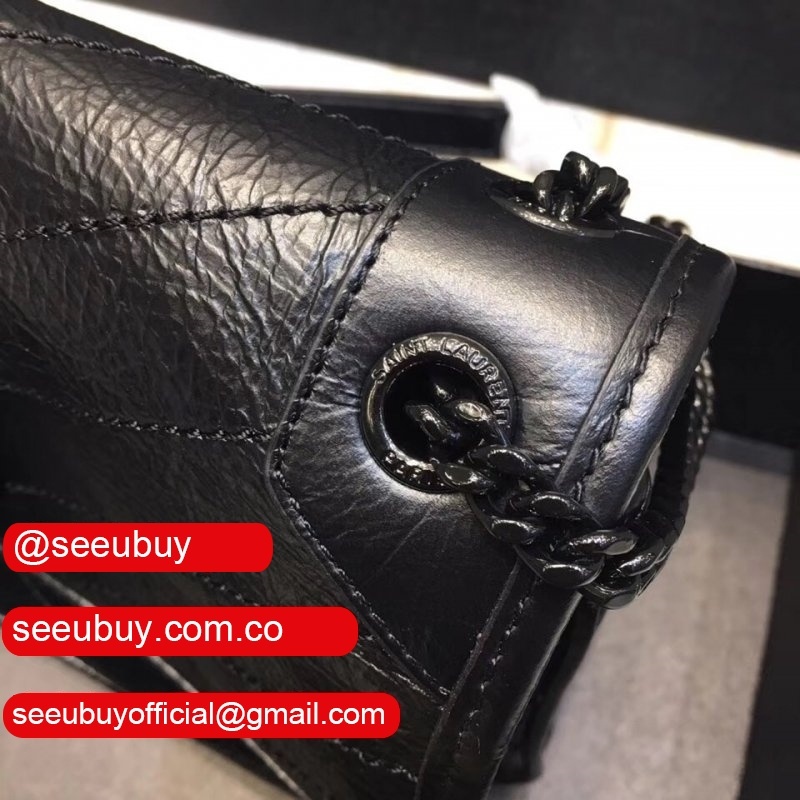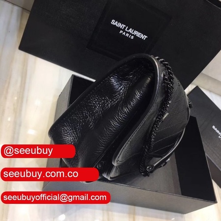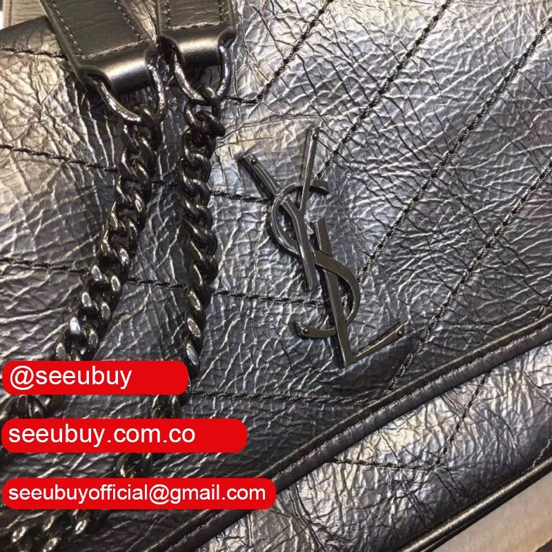 YSL Replica Niki 22cm crinkled vintage black leather