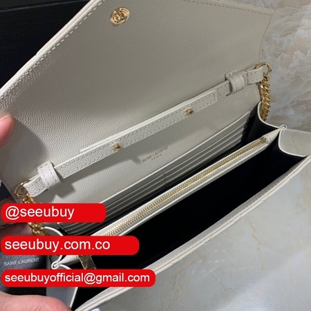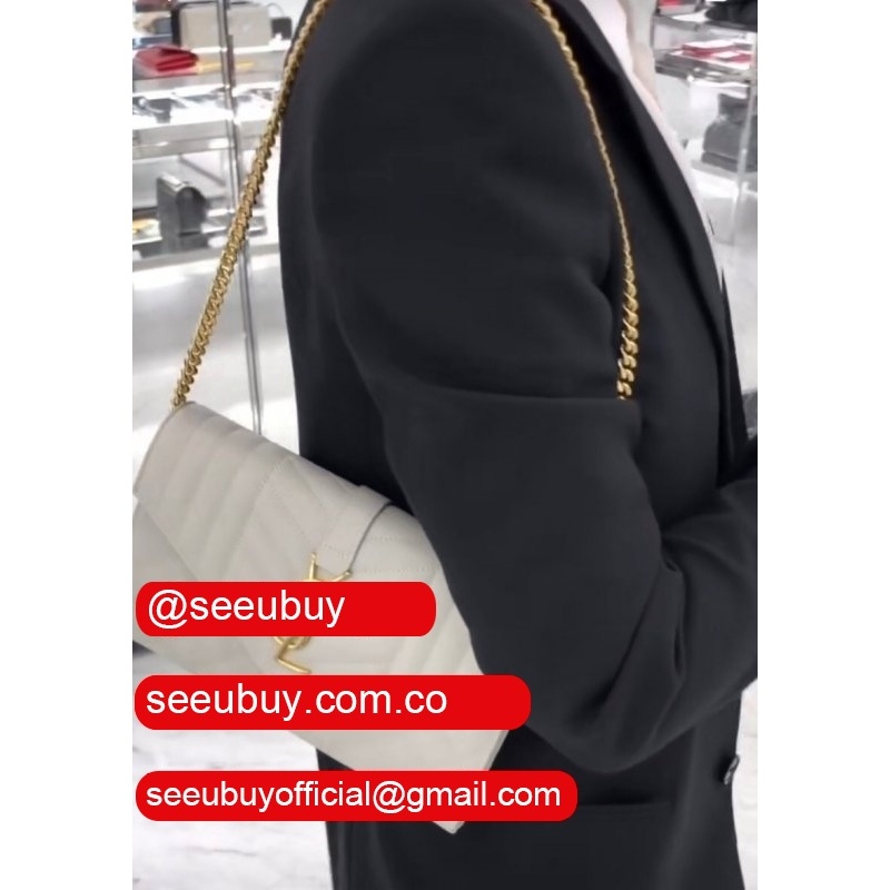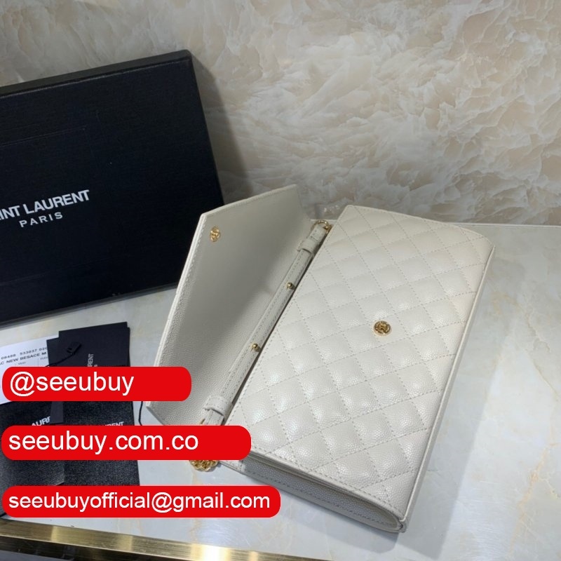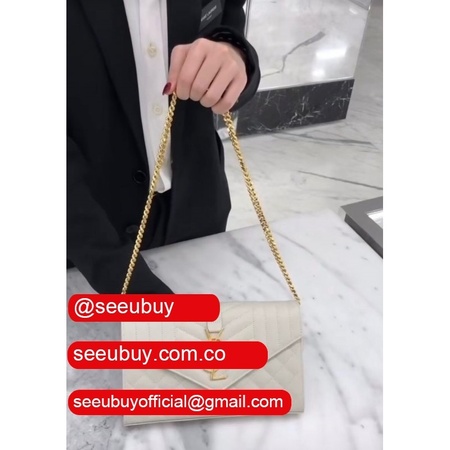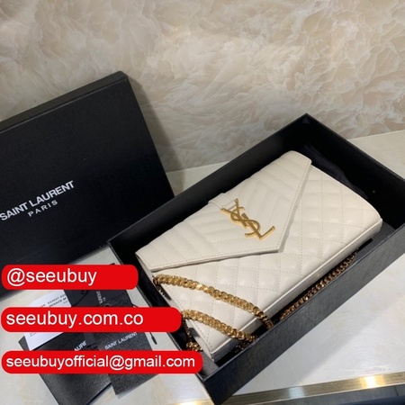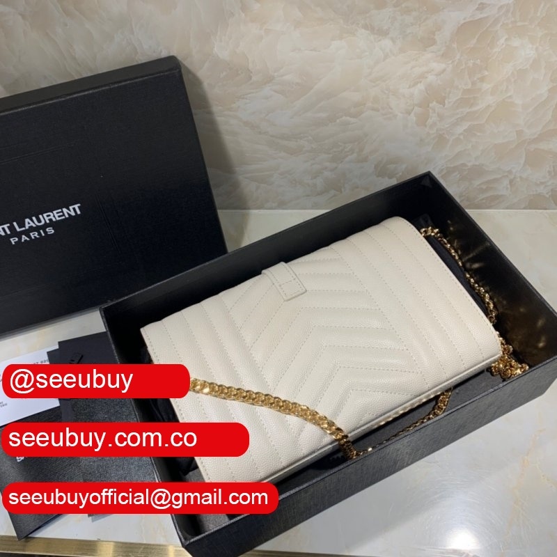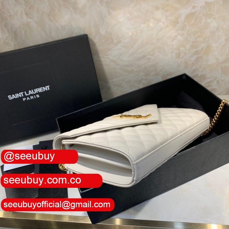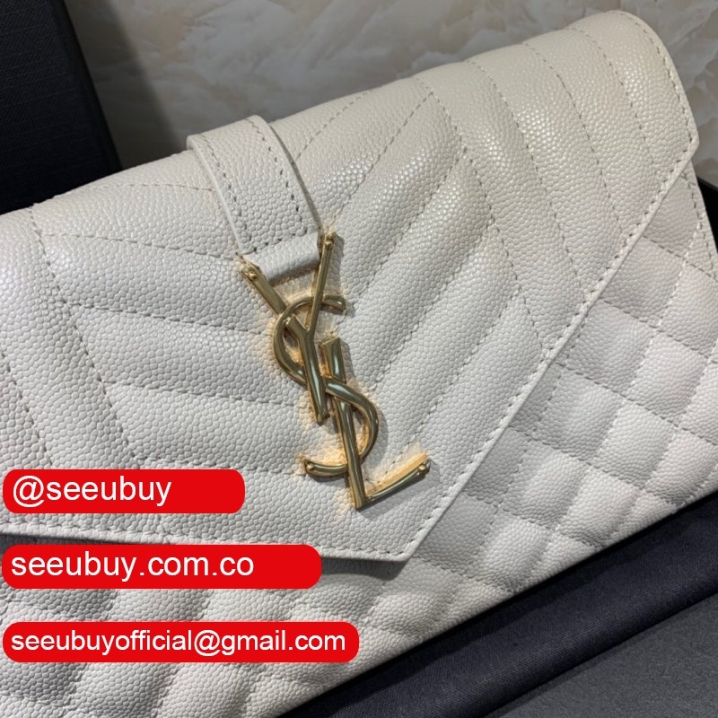 Shop white replica Saint Laurent Envelope crossbody bag