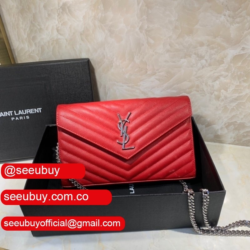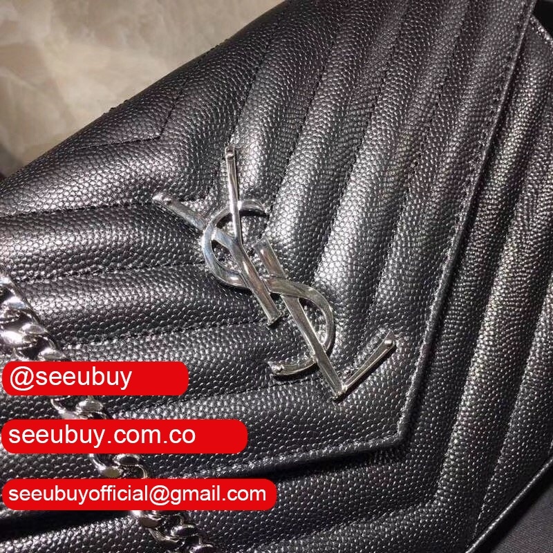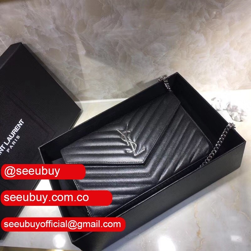 Wholesale Replica YSL 24 cm Gun Metal chain Black Bags